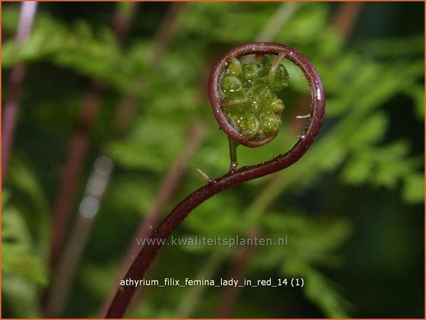 Botanische naam  : Athyrium filix-femina 'Lady in Red'Â