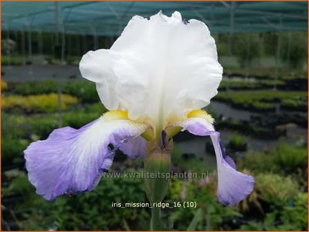 Algemene informatie over Blauwe lis, Duitse lis (Iris):Iris is een groot geslacht waarin men onderscheid maakt tussen wortelstokirissen en bolirissen. Wortelstokirissen worden het meest toegepast in de tuin. Irissen zijn vooral bekend door hun karakteristieke bloeiwijze. Ze zijn verkrijgbaar in allerlei kleuren. Er is een Iris voor elk type grond, voor zowel zon als schaduw. De hoge soorten voor gebruik in de border op een normale grond vallen onder Iris germanica en Iris sibirica. De lage soorten voor een droge tot normale grond in de rotstuin vallen onder Iris pumila. Voor een vochtige tot natte grond bij de vijver zijn Iris ensata en Iris pseudacorus te gebruiken.Blauwe lis - Iris germanica 'Mission Ridge'