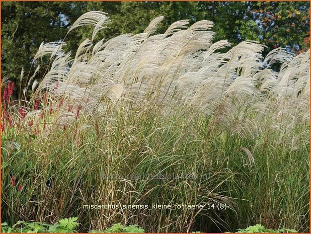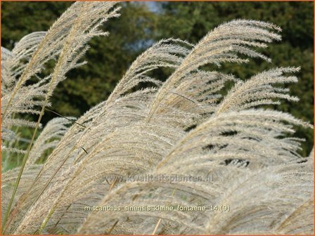 De bloei van Chinees riet begint in de nazomer en is vaak spectaculair. De uitgebloeide pluimen geven een mooi winterbeeld. Er zijn enkele soorten die alleen na een lange warme zomer bloeien. Knip Chinees riet pas in het voorjaar terug, zodra de jonge scheuten tussen de oude stengels zichtbaar worden. Het zijn veelzijdige planten die in geen enkele tuin of border mogen ontbreken.Chinees prachtriet - Miscanthus sinensis 'Kleine Fontäne' (pot 11 cm)